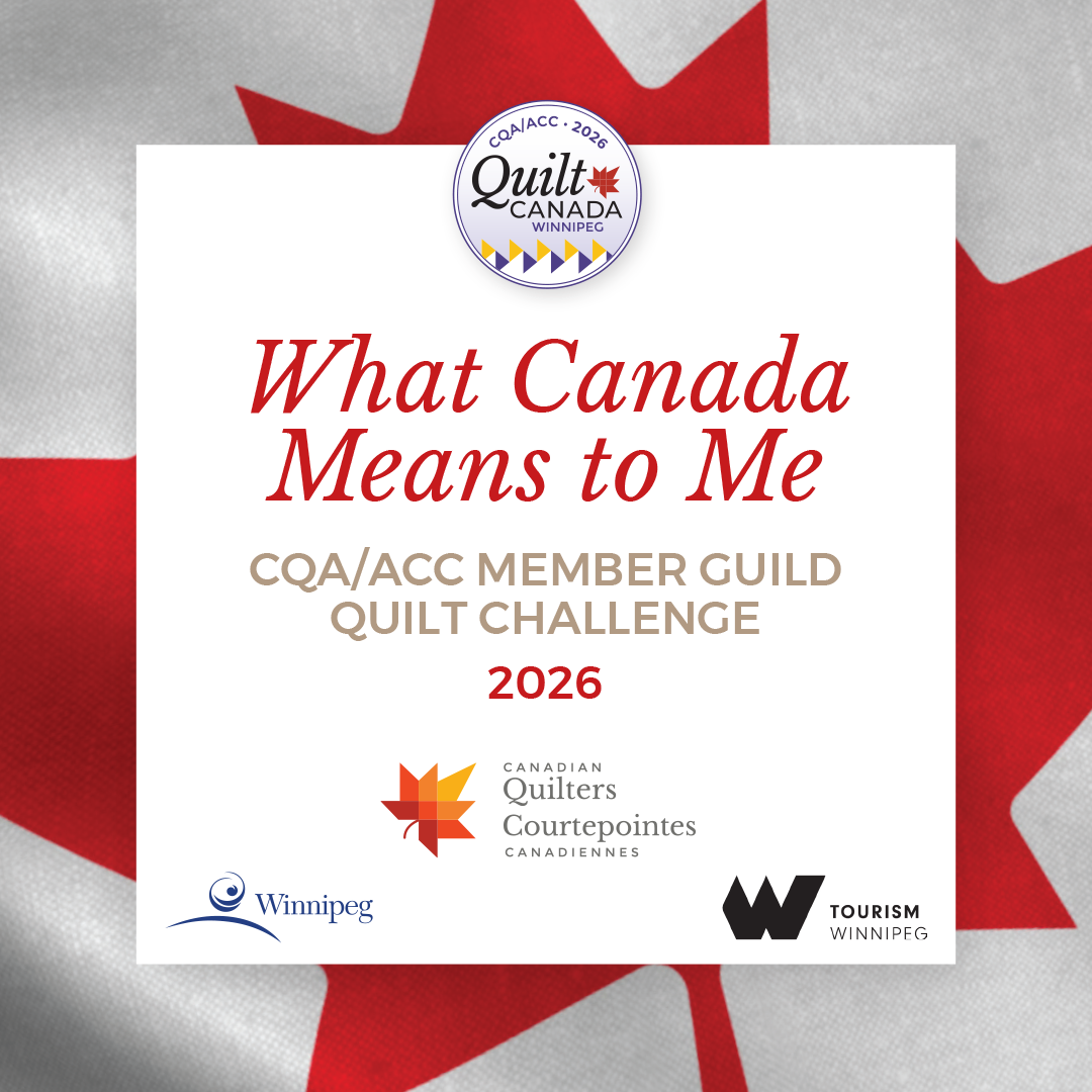 The Canadian Quilters’ Association/ Association Canadienne de la courtepointe (CQA/ACC) announces a Member Guild Challenge. Only CQA/ACC Member Guilds may enter this challenge, which has the theme “What Canada Means to Me.” The submitted quilts will be displayed at Quilt Canada 2026 in Winnipeg, MB, June 17-20, 2026.